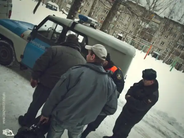 Оперативники задержали злоумышленника, пытаются надеть ему наручники, но тот даже не думал так просто сдаваться