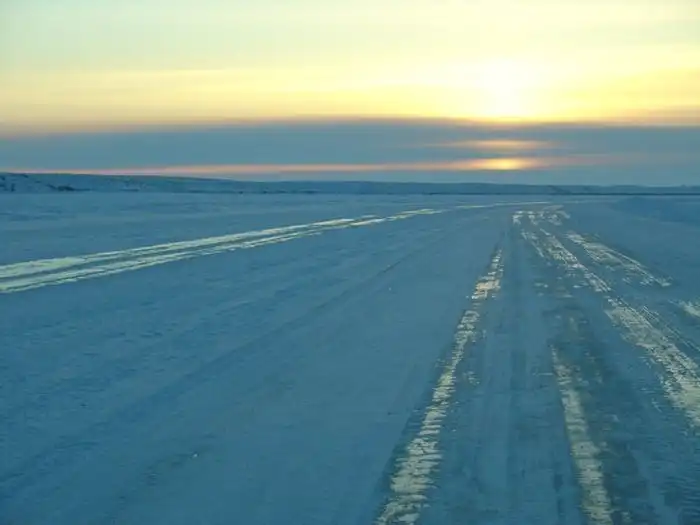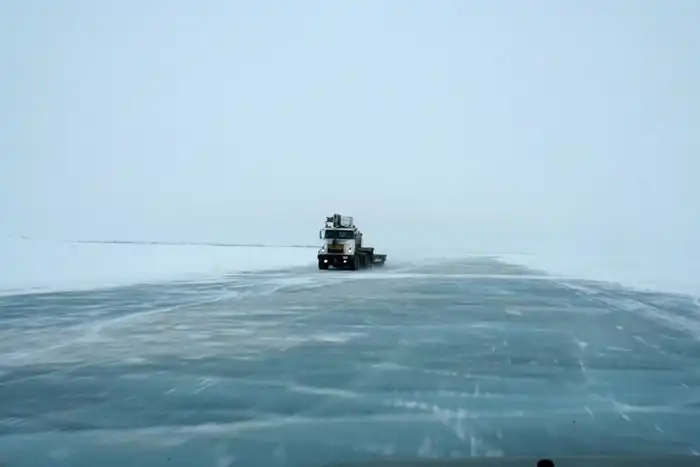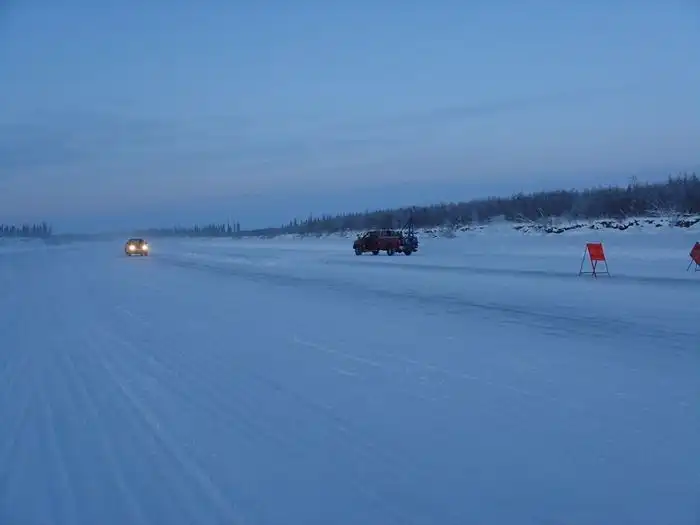 Эта дорога соединяет два города в Канаде и проехать по ней можно только зимой, когда во время сильных морозов замерзает река.