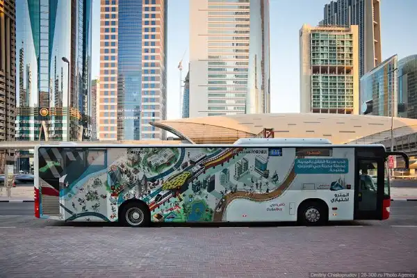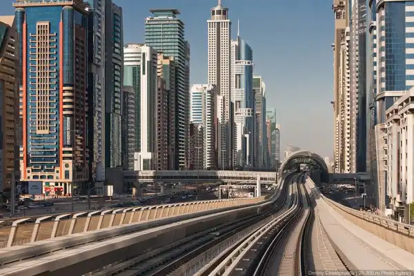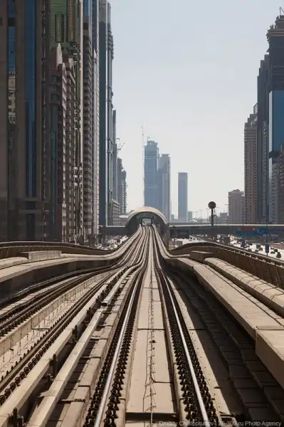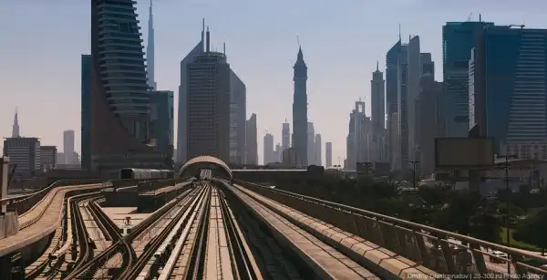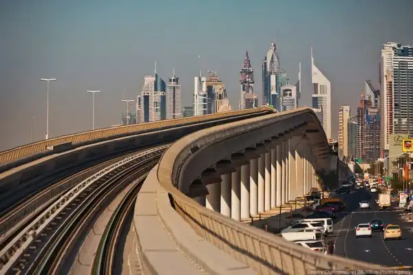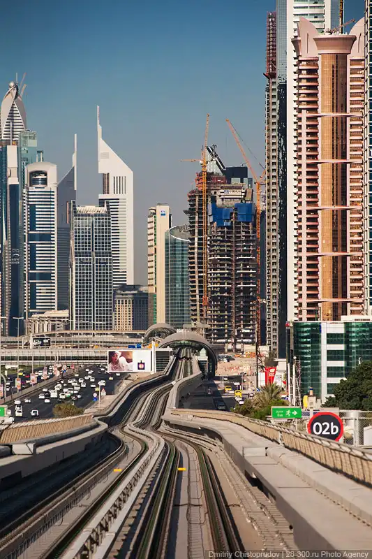 Прокатившись по «красной ветке» можно бегло посмотреть на весь Дубай. Большая часть рельс проходит по виадукам вдоль самой оживленной магистрали Эмиратов — шоссе Шейха Заеда, где выросли самые высокие небоскребы эмирата.