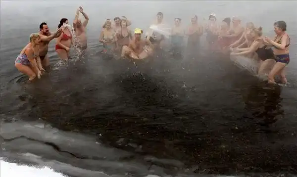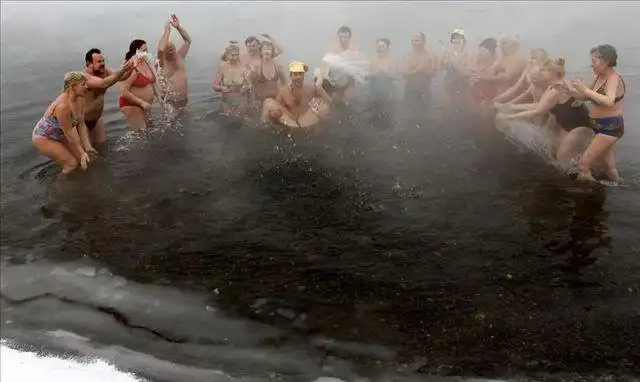 Бахнули беленькой, натянули купальнички и вперед молодоженов поздравлять, да в речке при минус 30 купаться.