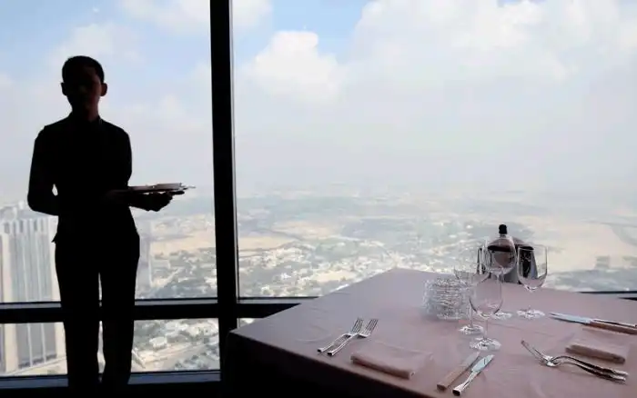 Этот ресторан расположен на Бурдж Дубае, в самом высоком здании в мире, на высоте 410 метров.