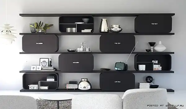 Современные полки нужны не только для хранения каких либо вещей, но и для украшения интерьера. Изменяй их расположение и вместе с этим будет меняться комната.