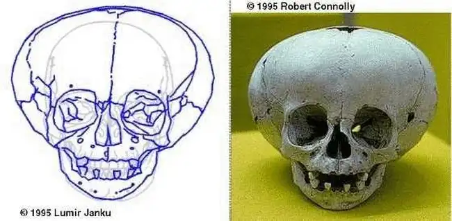 на лоб и на затылок накладываются иногда дощечки, что ведет к резкому уплощению лба и затылка.