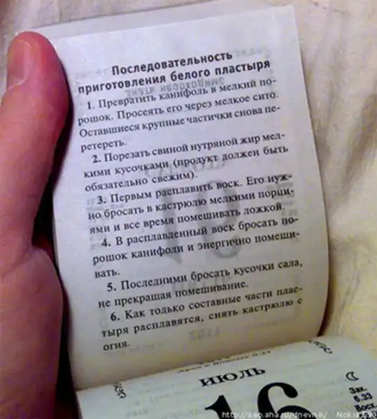 Редкий день не посвящен болезни. Например, 30 сентября - несовместимость основных лекарственных средств. Знаете, какие, оказывается, у нас основные лекарственные средства? Соли железа, йод, марганцовка, камфора, сера, нашатырь и ртутная мазь. Не все из них между собой совместимы, о чем и рассказывает листок. Боже, кто эти люди, которые лечатся серой и солями свинца? Где они достают марганцовку и камфору? Где, черт возьми, надо жить в 2011 году, чтобы пришло в голову самостоятельно изготавливать пластырь?