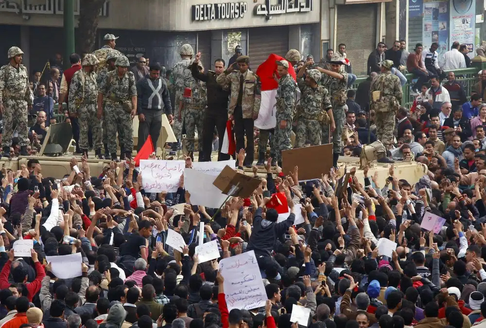 В настоящее время массовые митинги проходят на центральной столичной площади Тахрир. По самым скромным оценкам, там собрались около 50 тыс. человек. Протестующие приветствуют армию, "братаются" с военнослужащими.