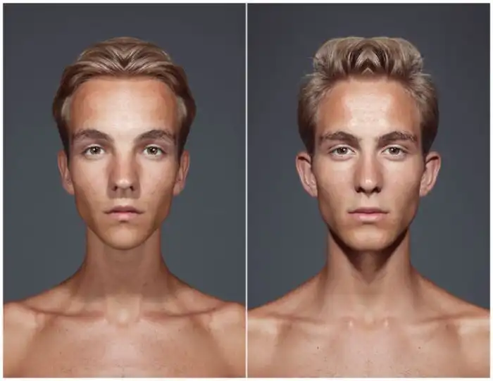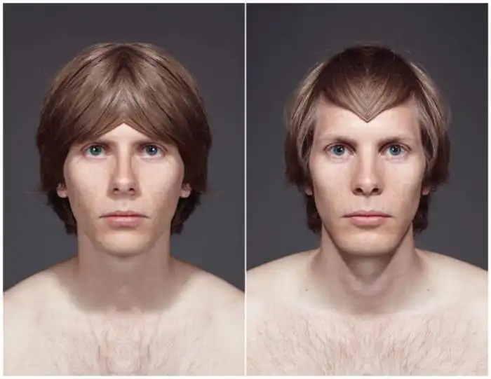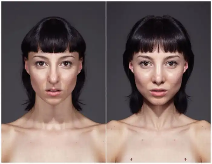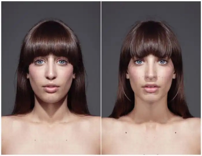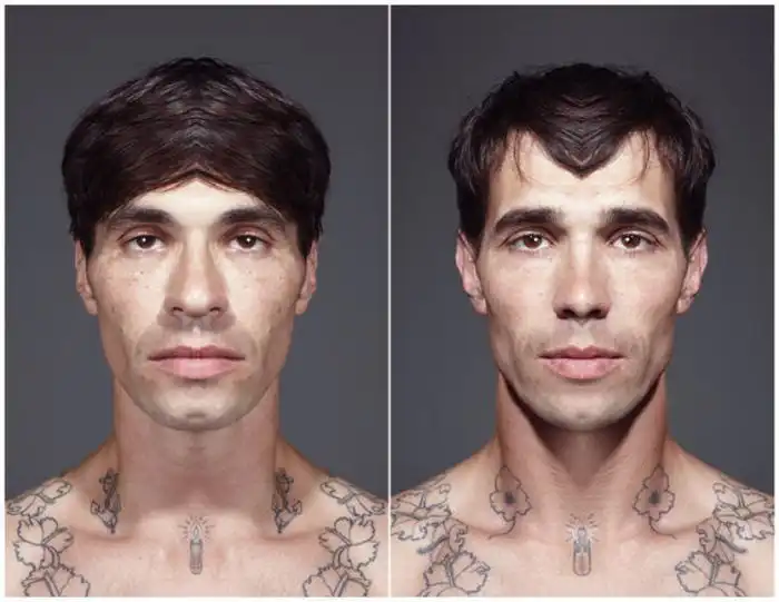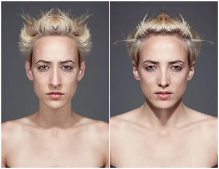 Интересный проект был придуман одним фотографом, после того, как он отфотографировал лица людей, снимки были разделены на две половинки и соединены левая с левой, а правая с правой частью. На мой взгляд, получилось более симметрично даже. Справа оригинальная фотография, а слева переделанная.