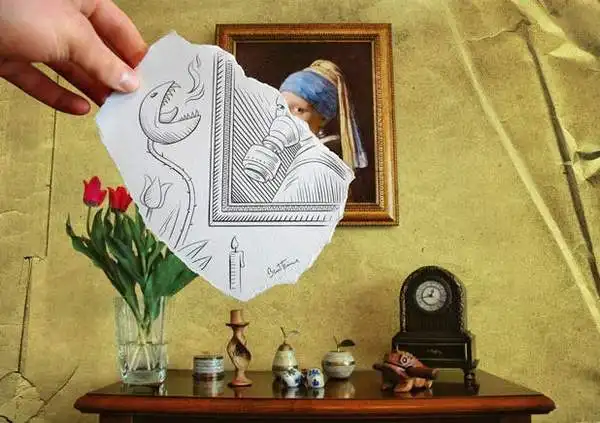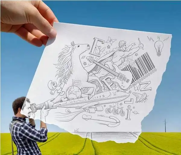 Сочетание карандашных набросков с реальной жизнью