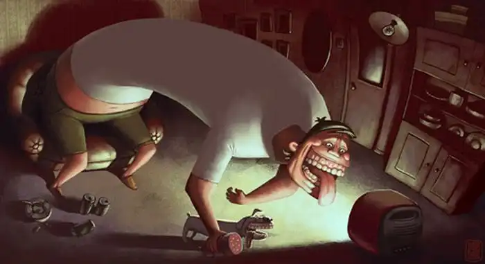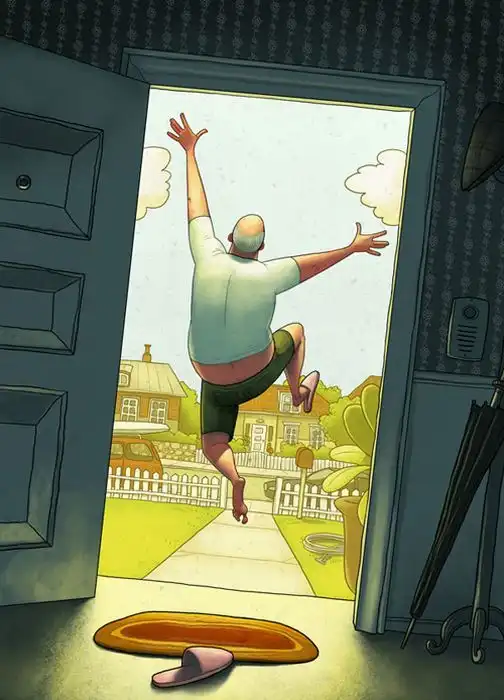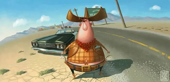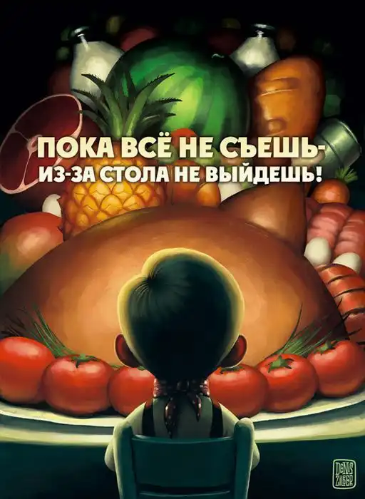 Хотя Денис Зильбер и рисует «замершие мультфильмы», его картинки не назовешь детскими,