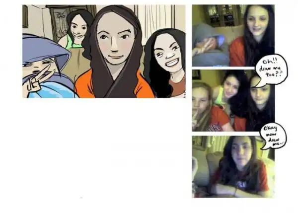 Один парень рисует карикатуры на людей, с которыми чатится)