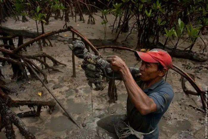 Хосе ловит около 150 крабов в день, которые он затем продает по 11 долларов за 100 штук у соседней трассы.