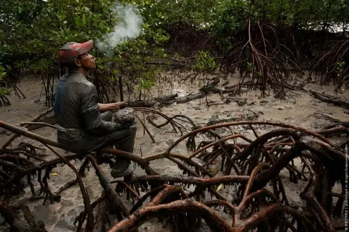 Именно здесь живет очень много крабов, так как здесь воды Амазонки встречаются с водой из Атлантического океана.