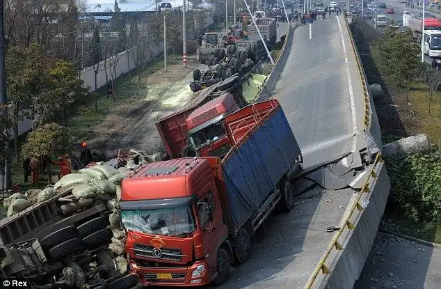Обрушение автомобильной эстакады в Китае