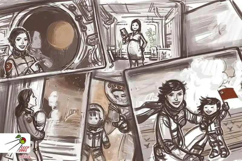 Интересный конкурс был проведен, темой которого стало освоение космоса во времена СССР. Невероятные постройки, техника, колонии на Марсе и других планетах, все это участники отразили в своих работах. Очень классные иллюстрации и идея.