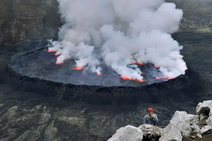 В центре этого кратера расположено озеро лавы, которое то засыпает, то оживает вновь.