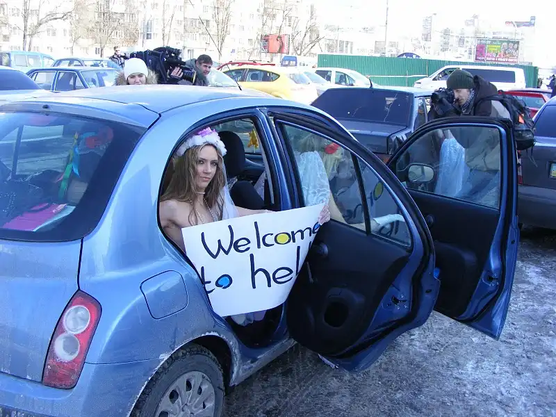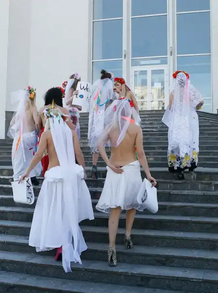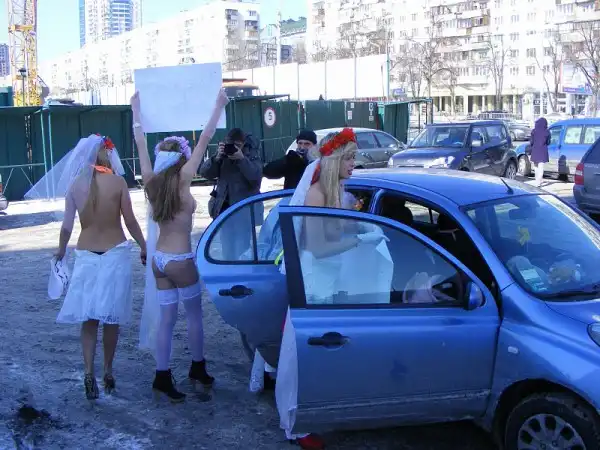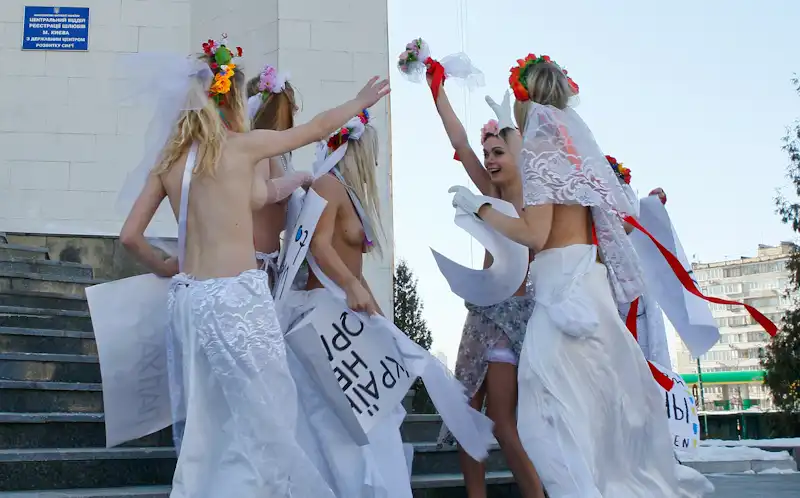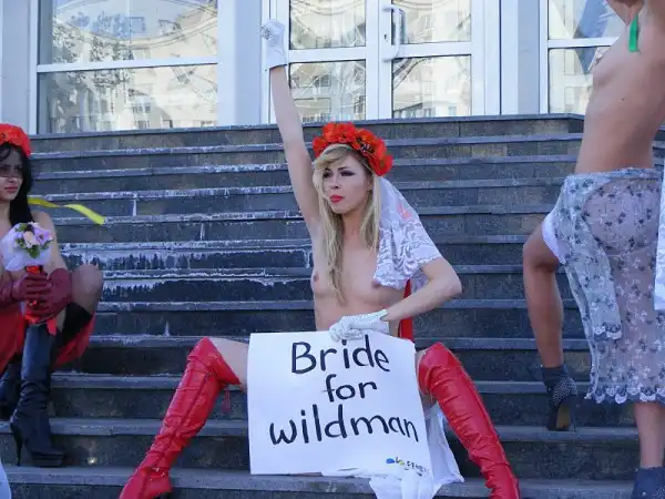 Вчера в 12.00 возле здания Центрального ЗАГСа столицы движение FEMEN, силами очаровательных «бесприданниц», выразило свое НЕТ! борделизации Украины.