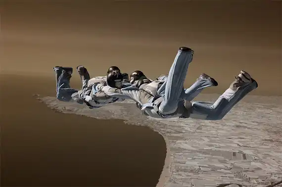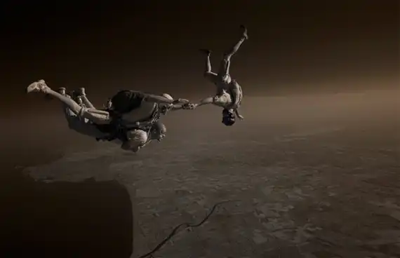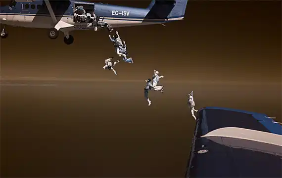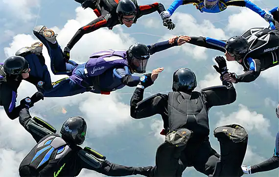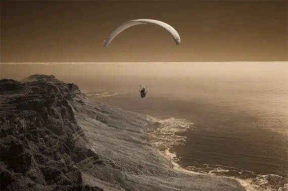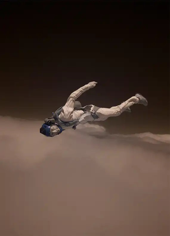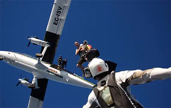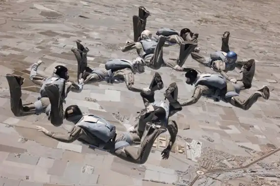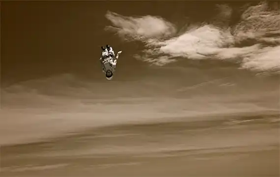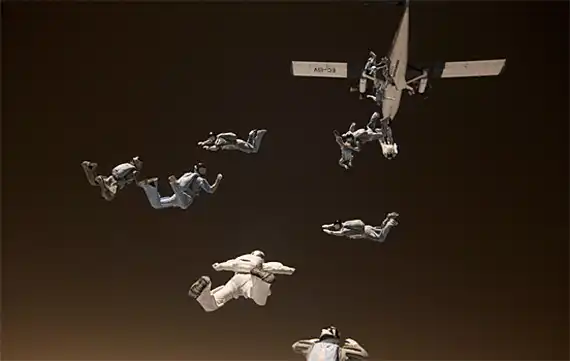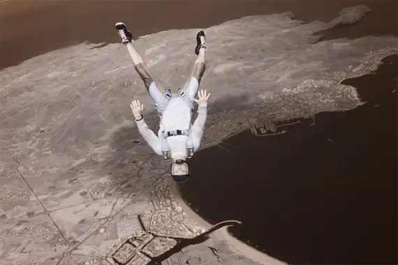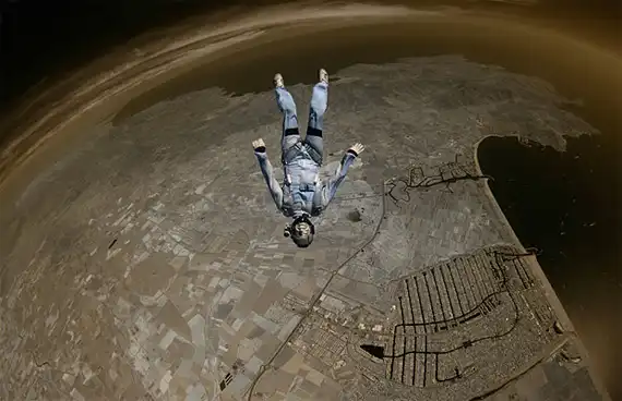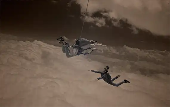 Обладая многолетнем опытом в области парашютного спорта, фотограф Майк Бердон (Mike Burdon) решил попробовать себя в новом жанре – экстремальная съемка. С близкого расстояния Майк фиксирует на камеру маневры парашютистов в воздушном пространстве. В зависимости от задуманного ракурса Майк использует технику как «перед», так и «вдогон».