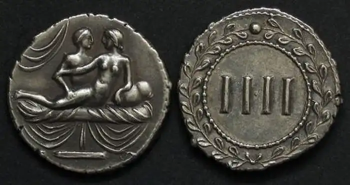 Денежные единицы сильнейшей империи, которые использовались в первом веке до нашей эры. Оказывается, некоторые изображенные детали с этих монет индийцы взяли для написания Вечной книги любви.
