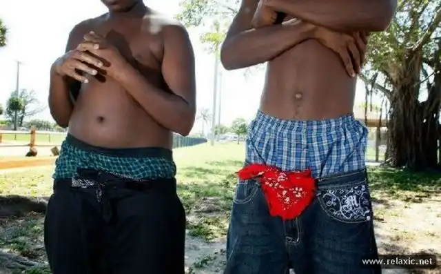 Многие из вас, конечно, видели в американских фильмах или даже на наших улицах таких “стильных” юношей в спадающих штанах. Но совсем не многие знают происхождение этой “модной” тенденции. Об этом существуют две версии и обе связаны с американскими тюрьмами. По первой из них, молодежь начала носить спущенные штаны в знак принадлежности к криминальному миру и из солидарности с друзьями-сидельцами, ведь у них в камерах забирали ремни и штаны натурально сваливались. По второй версии приспущенными штанами в тюрьме демонстрировалась принадлежность к нетрадиционной сексуальной ориентации и приглашение к… кхм… любви. Как бы там ни было, но в штате Луизиана за торчащее из брюк нижнее белье полагается штраф в 500 баксов или полугодичное тюремное заключение. Наверное “модники” предпочитают последний вариант – ведь где, как не в тюрьме их красоту оценят по достоинству...