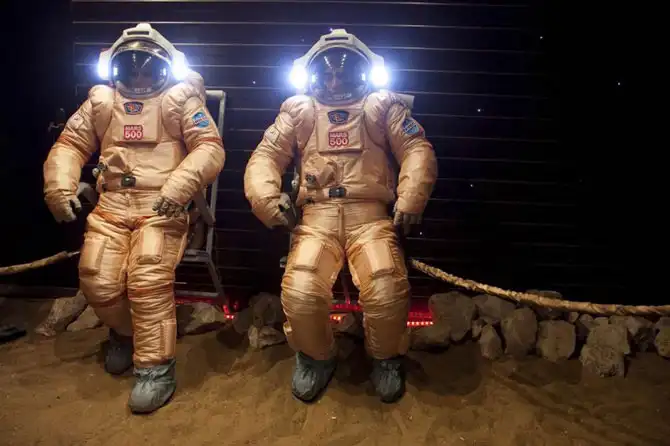 Прогулки по макету Марса. Тренировочная миссия по посадке на Марс прошла 14-го февраля на макете Красной Планеты. Спустя несколько дней после этого, члены экипажа добровольцев сделали три прогулки по воображаемому Марсу. На самом деле модель Марса представляет собой огромную песочницу, которую построили в научно-исследовательском центре Москвы. Выход был кульминационным моментом эксперимента, в ходе которого экипаж находился в полной изоляции в течение 520 суток. Целью опыта было установить, как будет вести себя настоящий экипаж в реальной ситуации, выполняя свою миссию на Марсе.