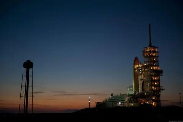 Космический шаттл «Дискавери» на стартовой площадке 39А Космического центра им. Кеннеди во Флориде, 1 февраля. Это второй раз, когда шаттл был выведен на стартовую площадку перед своим финальным полетом, миссией STS-133. Старт, который должен был состояться в прошлом году, был перенесен в связи с необходимостью ремонта внешнего топливного бака. Теперь старт «Дискавери» назначен на 24 февраля.