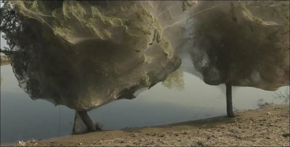 деревья оказались обернуты густой паутиной. Выглядит это пугающе. И губительно для здоровья деревьев. Но есть и положительный момент: резко снизилась популяция комаров и, как следствие, уменьшилось число случаев заболевания малярией.