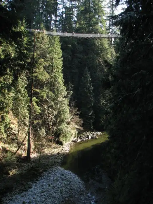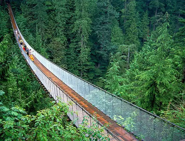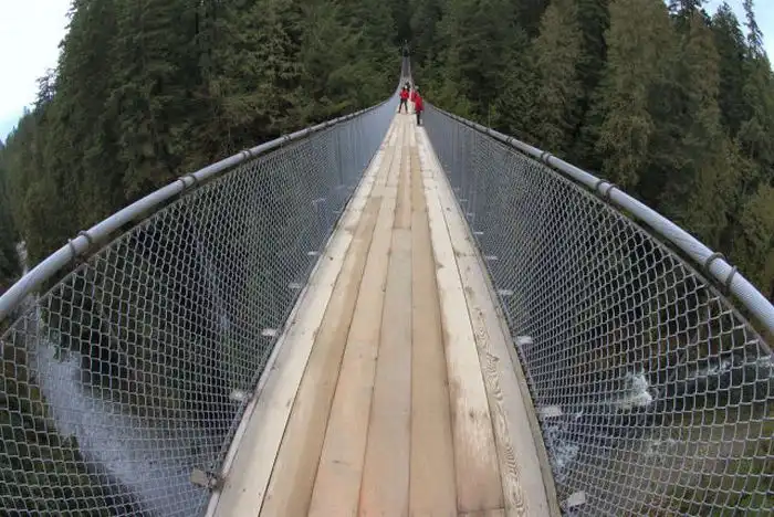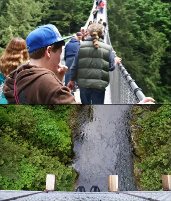 Представьте себе мост длиной 136 метров, который висит над рекой на высоте 70 метров.