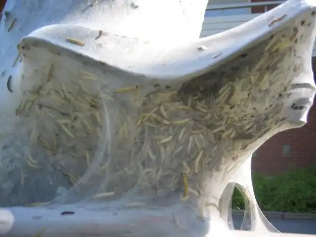 Жуткое нашествие личинок шелкопряда. Они закатали буквально все, до чего доползли.