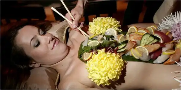 Обнаженное женское тело, которое служит своеобразной «тарелкой» для посетителей необычного ресторана Nyotaimori, играет не только эстетическую роль. По словам работников этого ресторана, суши на обнаженном женском теле нагреваются до определенной температуры – температуры тела. Это позволяет гостям фокусироваться на текстуре и вкусе блюда, а не на его температуре.