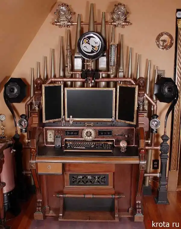 Оригинальное название проекта - “Victorian Organ Command Desk”. Находится этот кабинет у Брюса и Мелани Розенбаум в городе Шерон (США). Фанаты оценят. Ну и остальные тоже. Очень круто сделано.