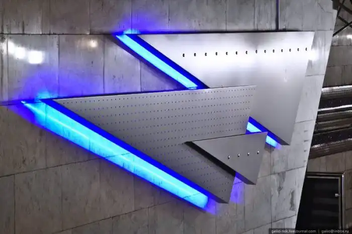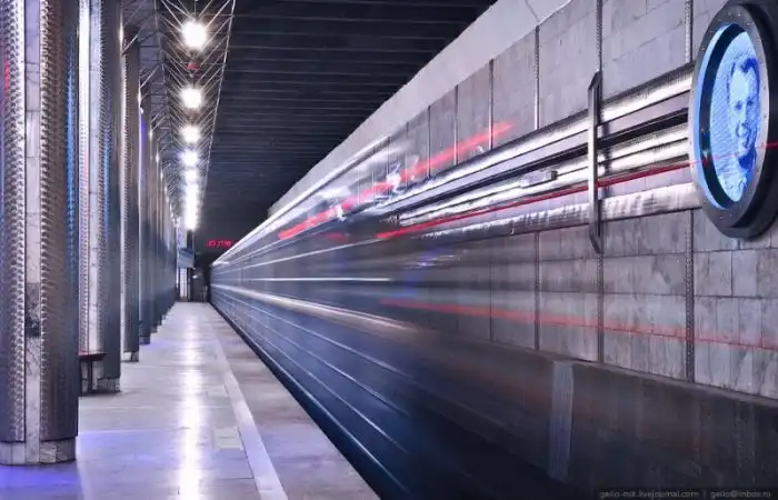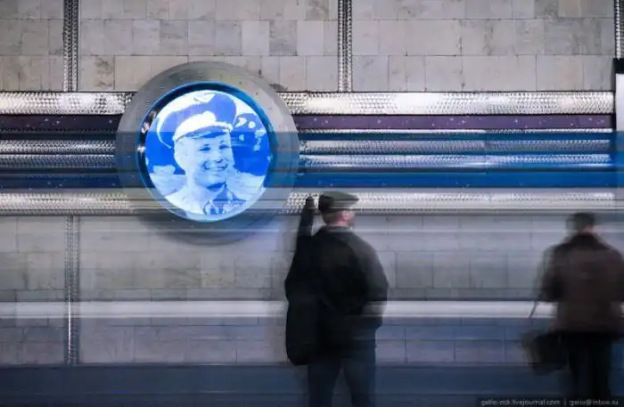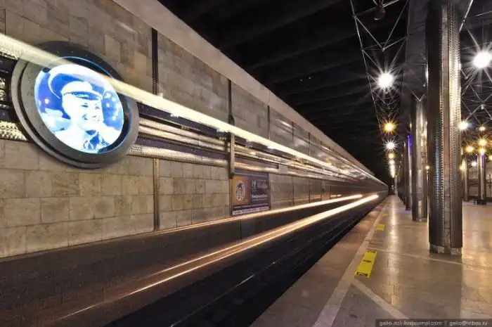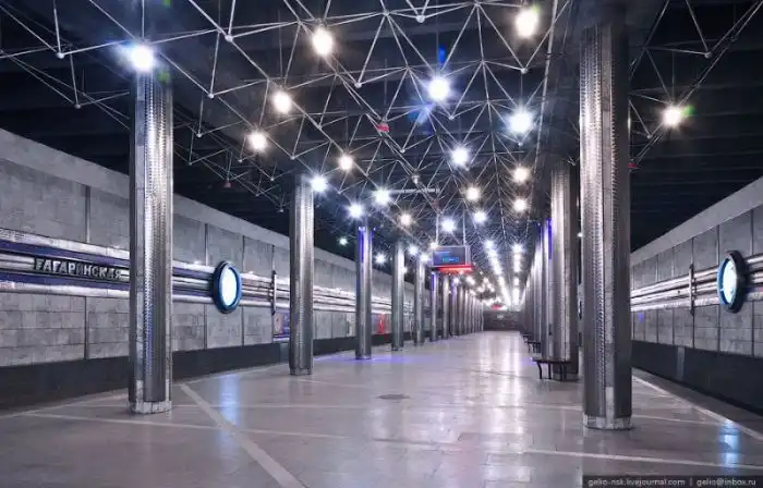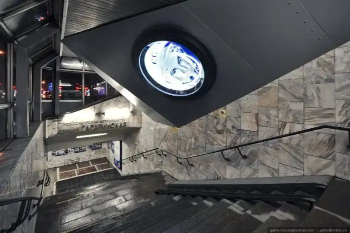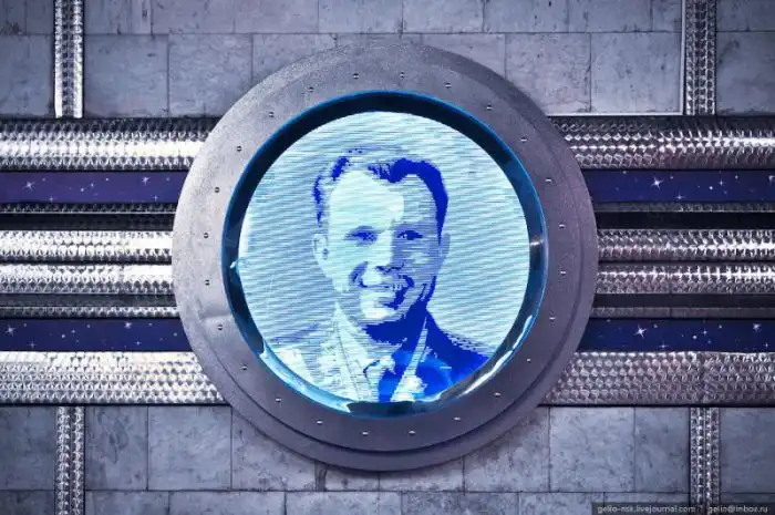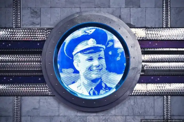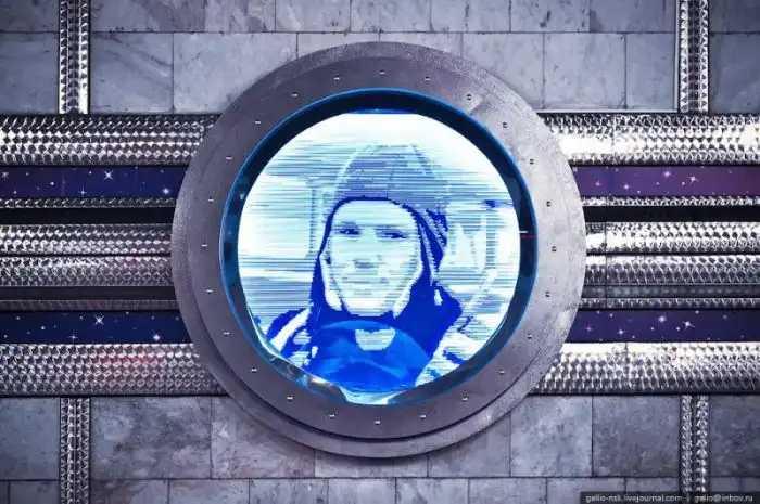 К прошедшему уже Дню космонавтики и 50-летию полета Юрия Гагарина в космос в Новосибирске решили оформить станцию метро «Гагаринская» в космическом стиле. На стенах появились портреты Юрия Гагарина, выполненные в форме иллюминаторов, поручни сделаны в виде элементов космических кораблей, а лампы на потолке стали напоминать звездное небо. Получилось очень здорово.