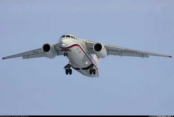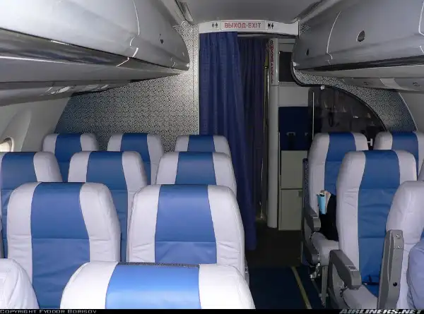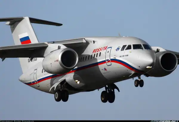 Ан-148 - региональный ближнемагистральный самолёт. Спроектирован киевским АНТК им. Антонова, в программе производства задействованы завод "Авиант" на Украине и "Воронежское акционерное самолетостроительное общество" в России. В компановке ГТК "Россия" Ан-148 рассчитан на перевозку 68 пассажиров: 8 мест отведено для бизнес-класса, 60 - для экономического. Дальность полёта составляет 3,5 тысячи километров, крейсерская скорость - 800 - 870 километров в час. Особенностью этого типа ВС является высокое расположение двигателей, что позволяет самолёту совершать взлёты и посадки даже на аэродромах с низким качеством покрытия. Современное бортовое оборудование делает возможным посадку машины в сложных метеорологических и ночных условиях.