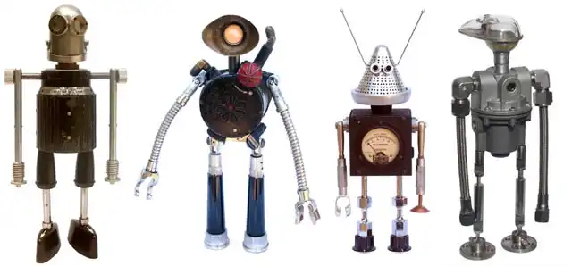 Творцы, так называют себя создатели этих роботов, используют весь попавшийся под руку материал, в том числе и из мусорной корзины. Вскоре этот мусор превращается в интересные маленькие механизмы, а затем и в роботов. Удивительные работы представлены ниже.