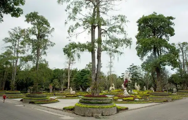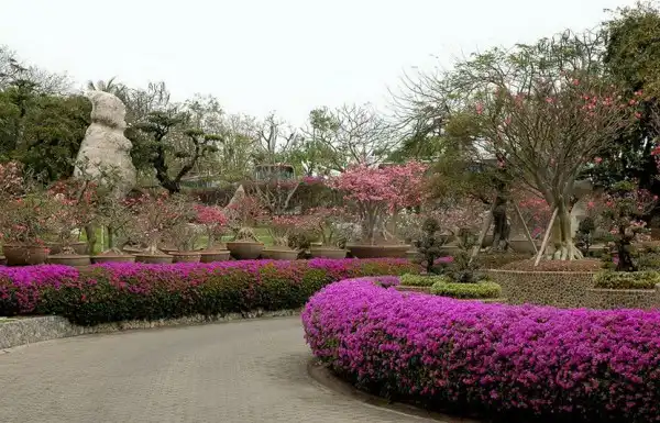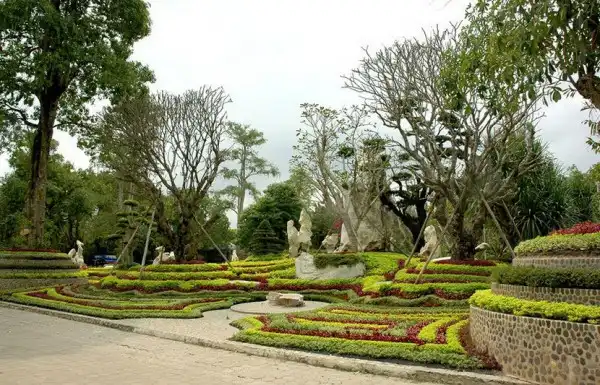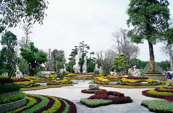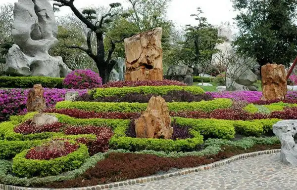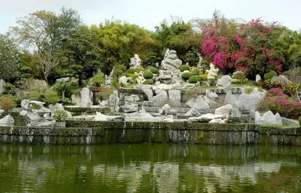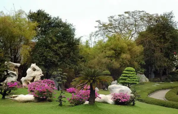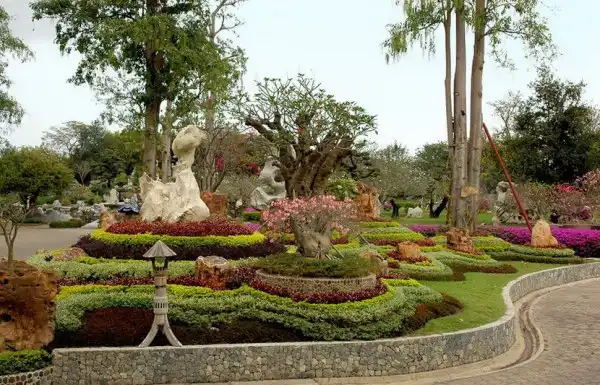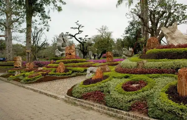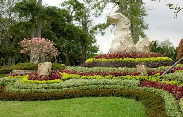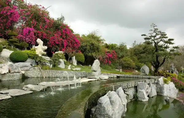 Парк изобилует красивоцветущими и декоративнолистными деревьями и кустарниками, топиарными формами, замысловатыми дорожками и водными каскадами.Восхищает своей грандиозностью каменистый сад парка.