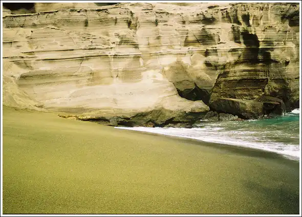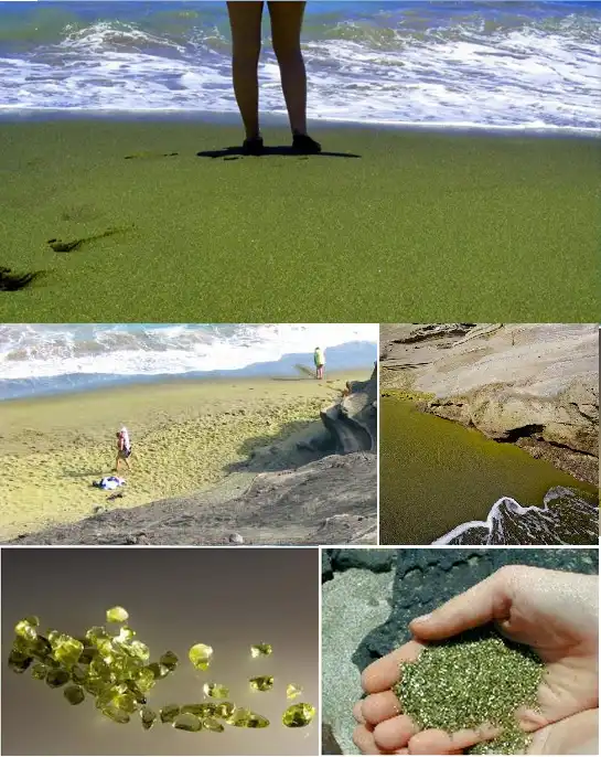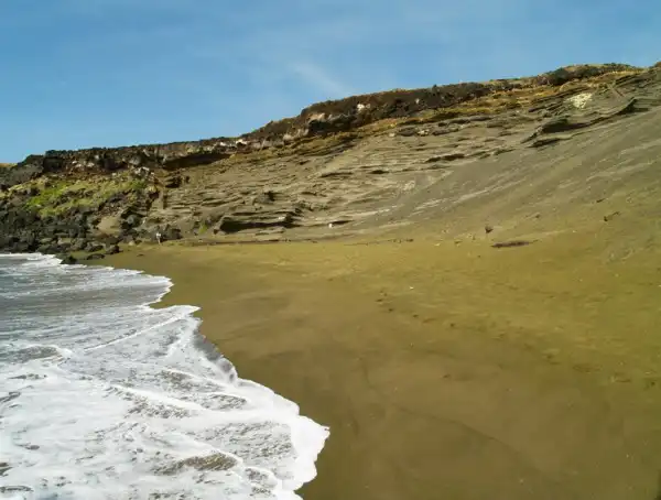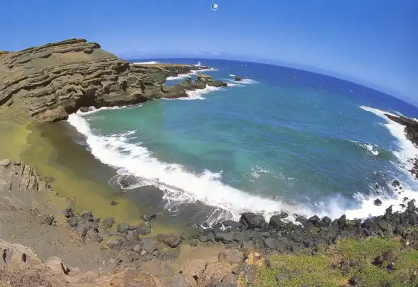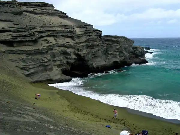 Папаколеа, Гавайи. Зеленый песок имеет вулканическое происхождение.