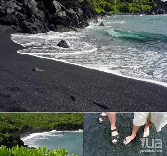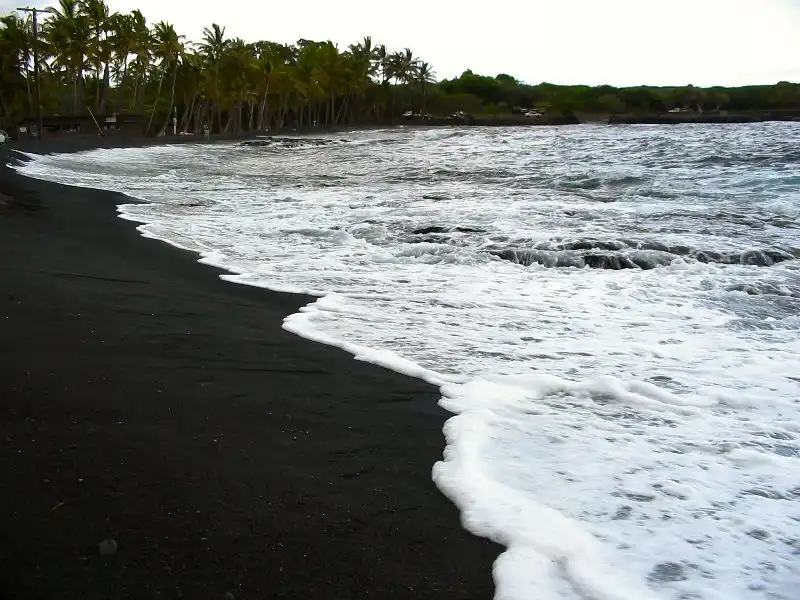 Пуналу, Гавайи. Черный песок также имеет вулканическое происшождение.