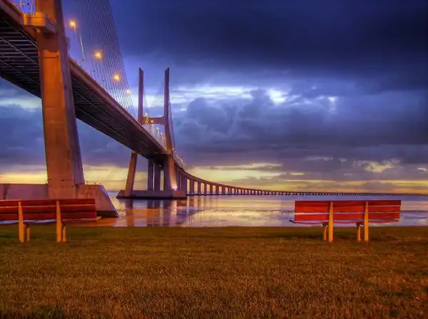 Знаменитый лиссабонский мост Васко да Гама, или Бесконечный мост, являющийся сегодня длиннейшим мостом Европы (17,2 км)