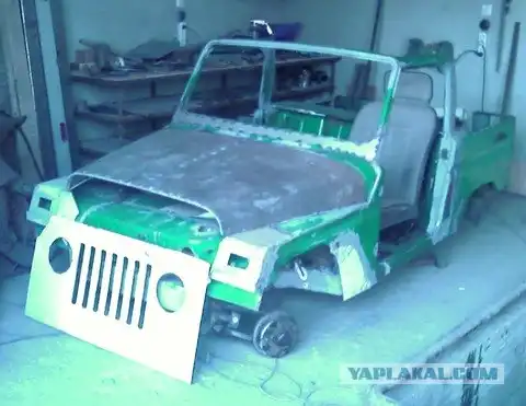 Квадратные двери от сарая тоже были переделаны под Wrangler с закруглённым углом и откосом…