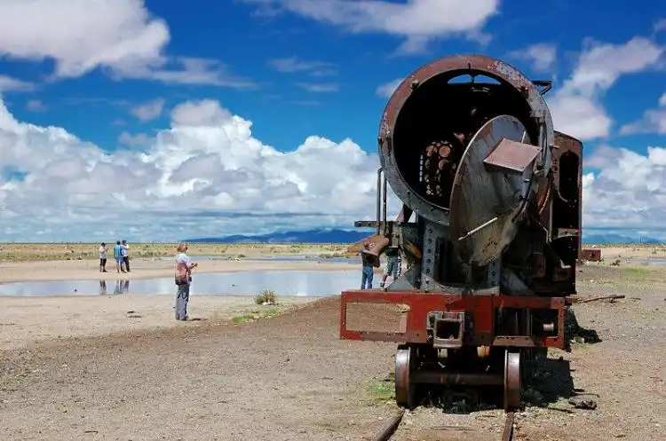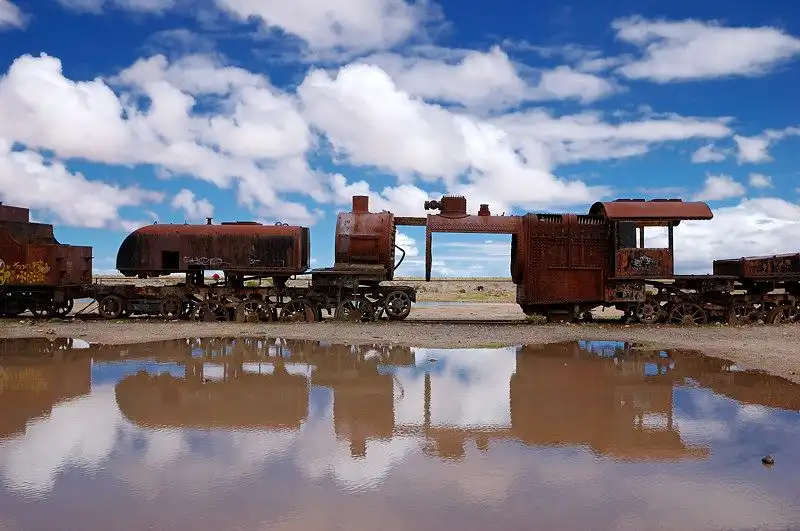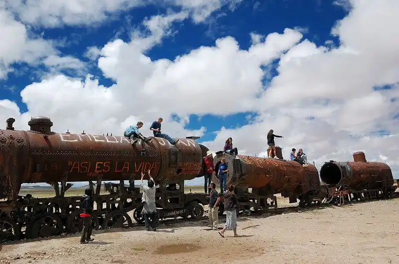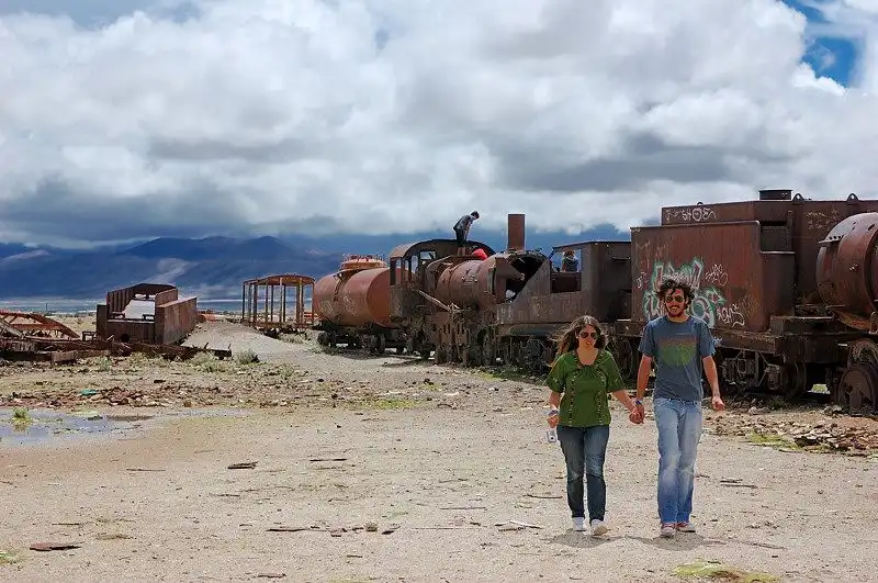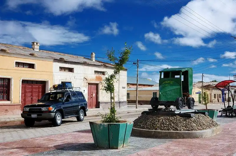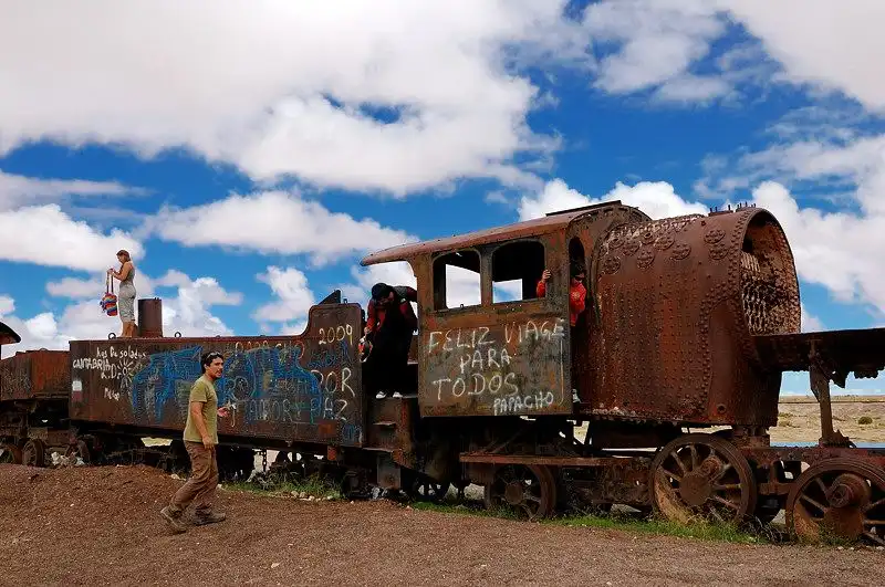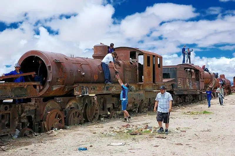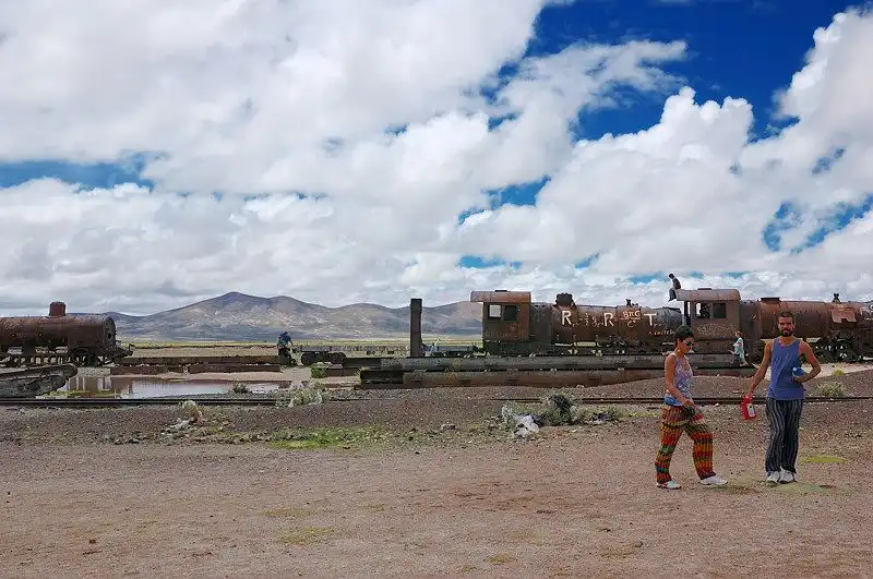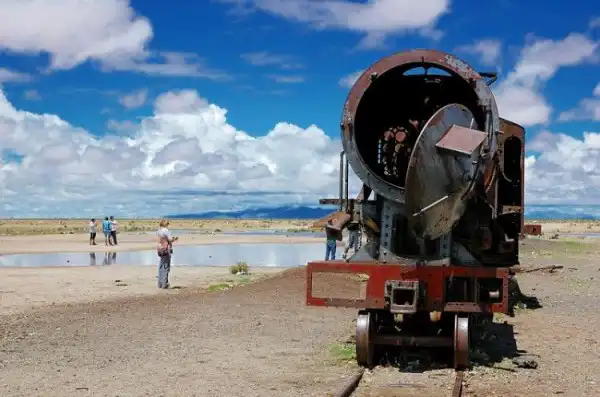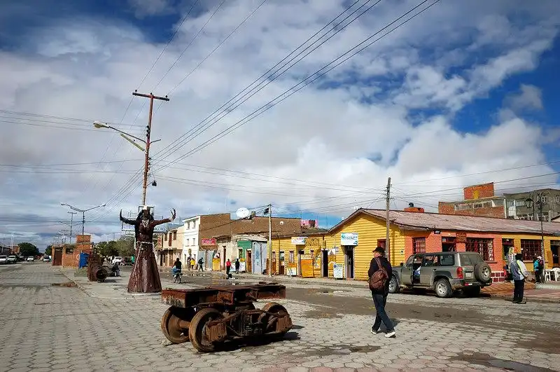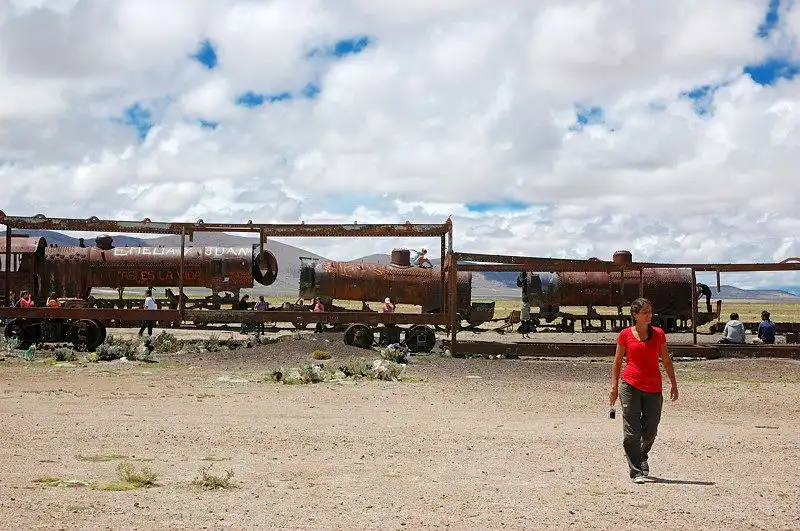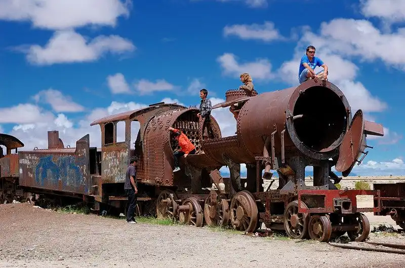 Железные дороги в Боливии начали строить англичане в конце 19-го века. Использовались они в основном для вывоза добываемых полезных ископаемых. В Уюни тогда была большая узловая станция, и город был городом железнодорожников. Однако в 1940-х годах горнодобывающая промышленность Боливии пришла в упадок и возить стало нечего. И теперь о тех временах напоминают лишь тематические памятники на центральных улицах Уюни: