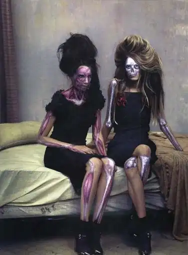 Японка Fumie Sasabuchi / Фумие Сасабучи перерабатывает страницы модных журналов и деконструирует их в паре понятий: красота и смерть. Она использует это средство, для изучения невидимых слоев тела, следовательно, создает новые гибридные образы тела, в которых рекламный эстетический план расплавлен материальным натуралистическим анатомическим анализом. Манипуляции современного визуального мира в 21-м столетии — допустимая величина. Тем не менее, есть все еще очень ясные границы, которые стоят на страже вседозволенности. Предмет смерти остается одним из многих табу в Западной культуре. Фумие Сасабучи раскрывает подавленный визуальный мир и создает новое понятие красоты. Возможно, извращенной.