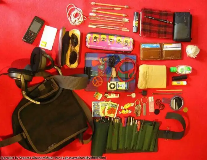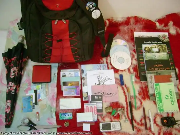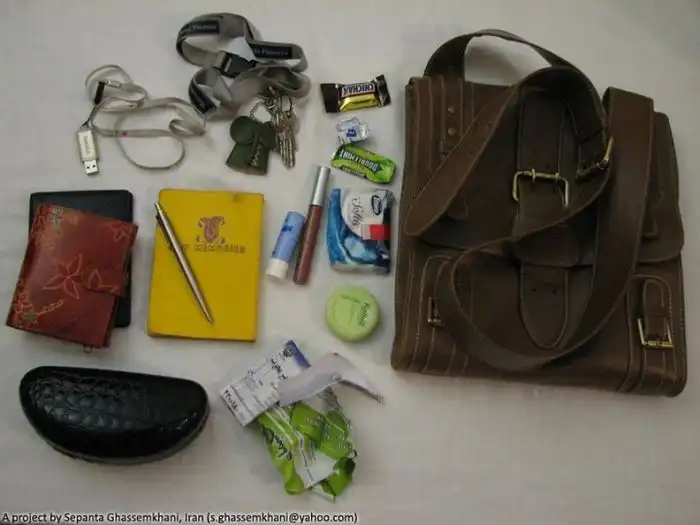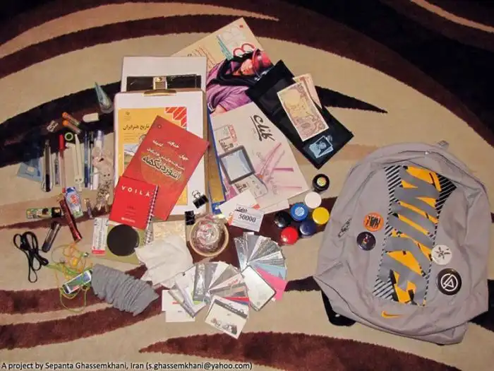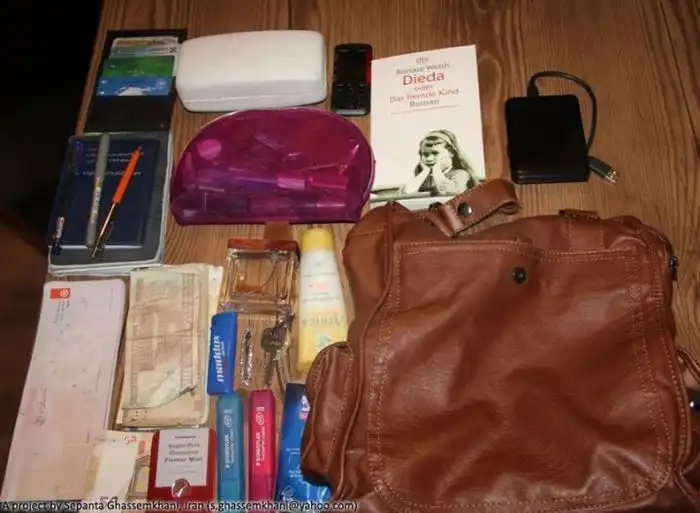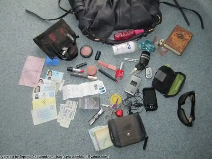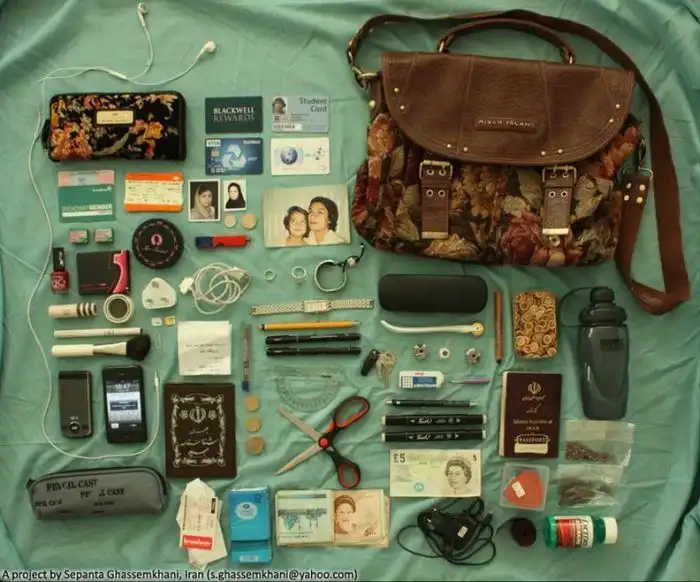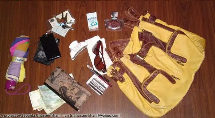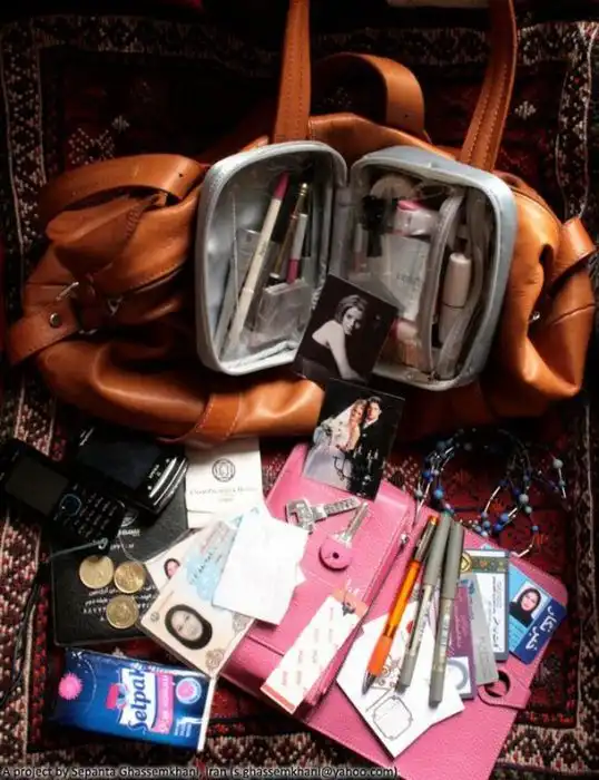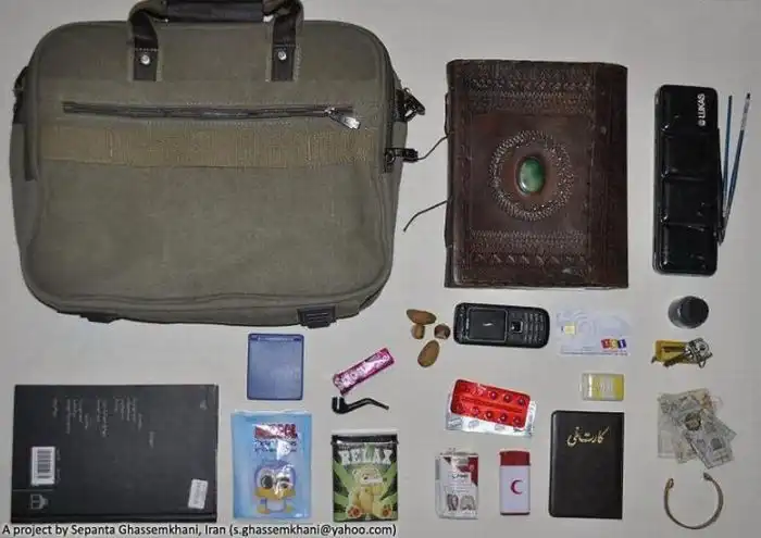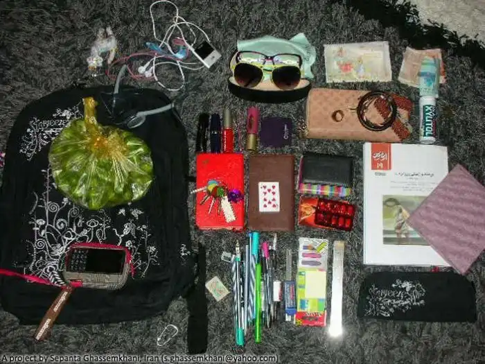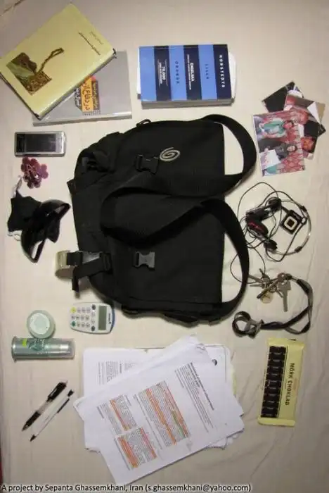 Мы очень мало знаем об иранцах. Иран - достаточно закрытая страна, да и на русских улицах не так часто встретишь иранцев. А что если мы могли бы заглянуть в сумку обычного иранца или иранки? Одна девушка, художница по имени Сепанта Гхассемхани воплотила в жизнь специальный проект, попросив иранцев и иранок прислать по Интернету фотографии содержимого их сумок. У нас с вами появляется уникальная возможность соприкоснуться с частной жизнью молодых жителей современной Персии.