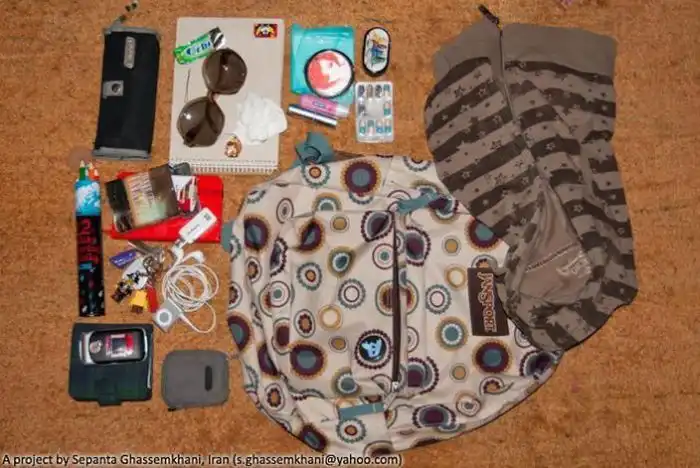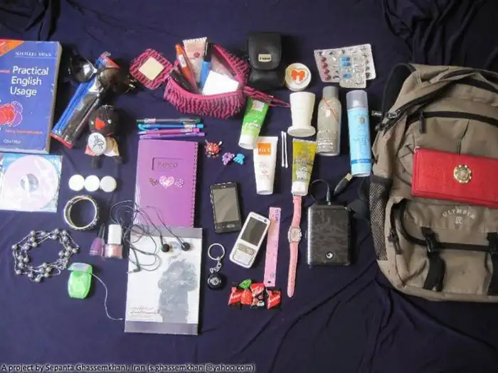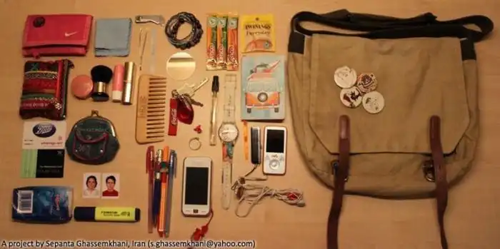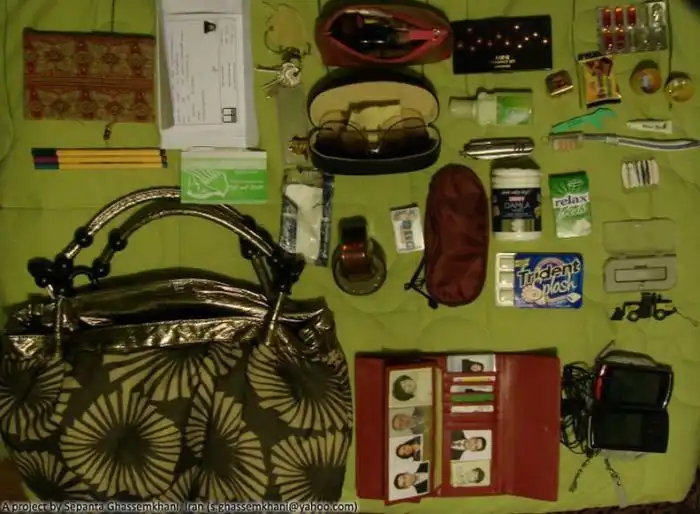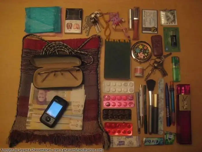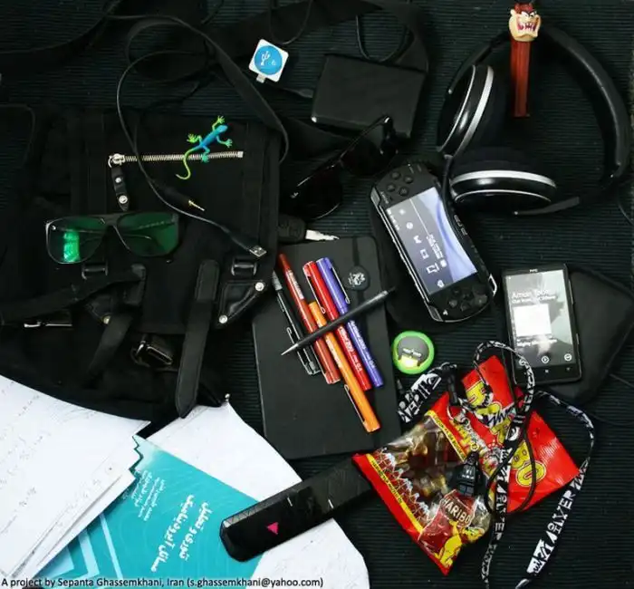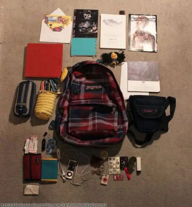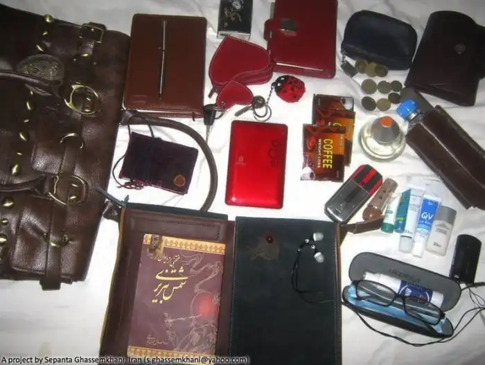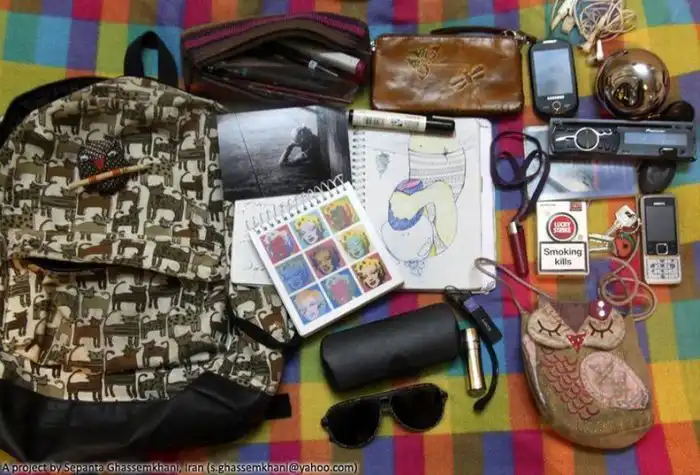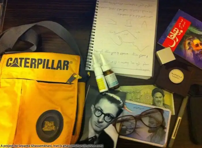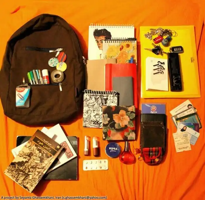 Мы очень мало знаем об иранцах. Иран - достаточно закрытая страна, да и на русских улицах не так часто встретишь иранцев. А что если мы могли бы заглянуть в сумку обычного иранца или иранки? Одна девушка, художница по имени Сепанта Гхассемхани воплотила в жизнь специальный проект, попросив иранцев и иранок прислать по Интернету фотографии содержимого их сумок. У нас с вами появляется уникальная возможность соприкоснуться с частной жизнью молодых жителей современной Персии.