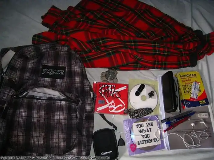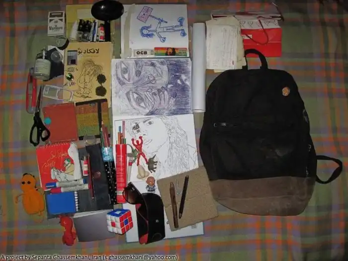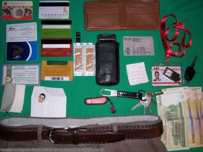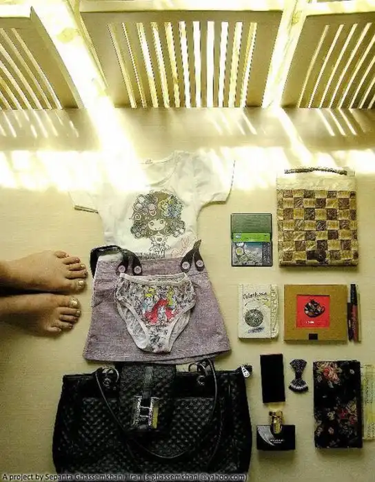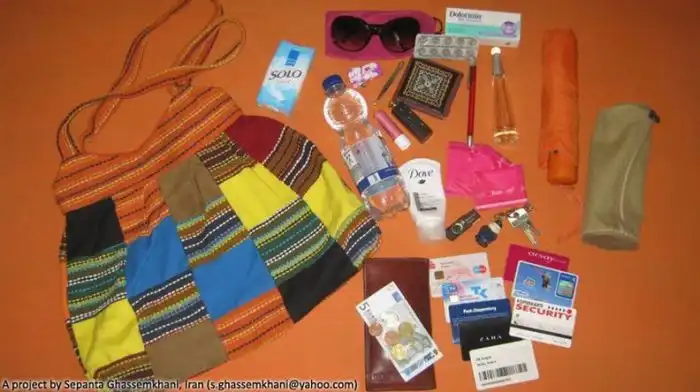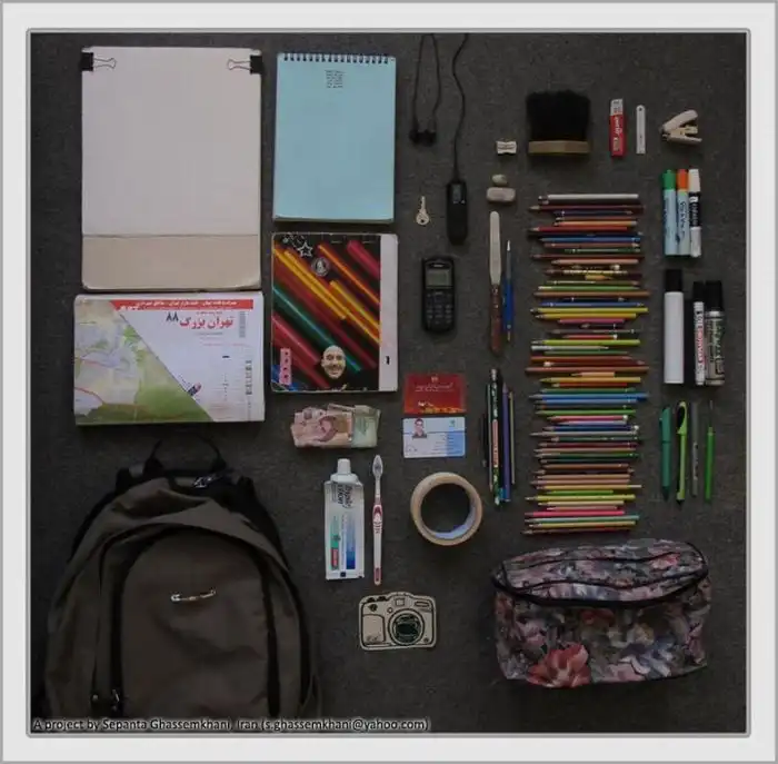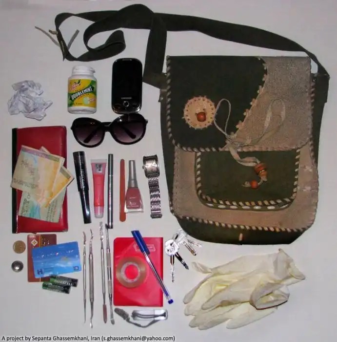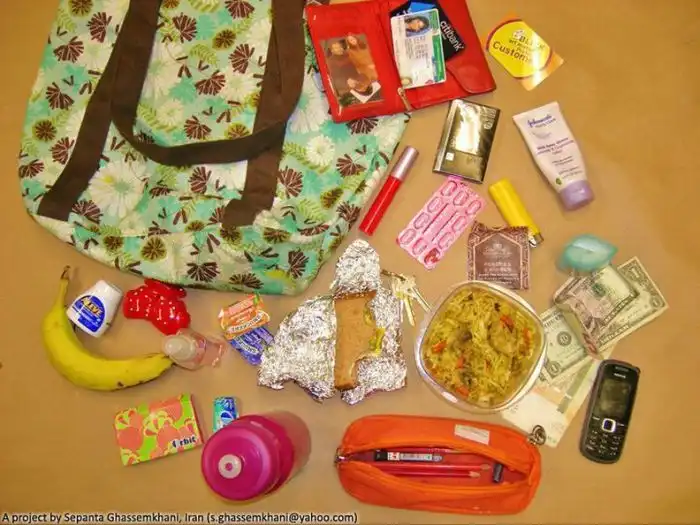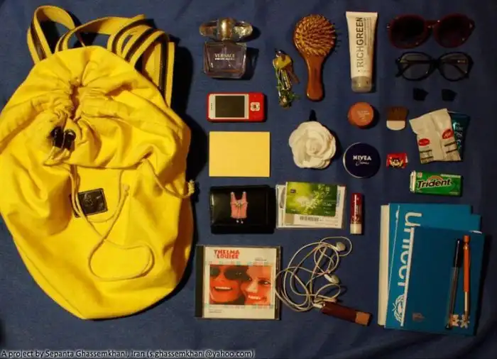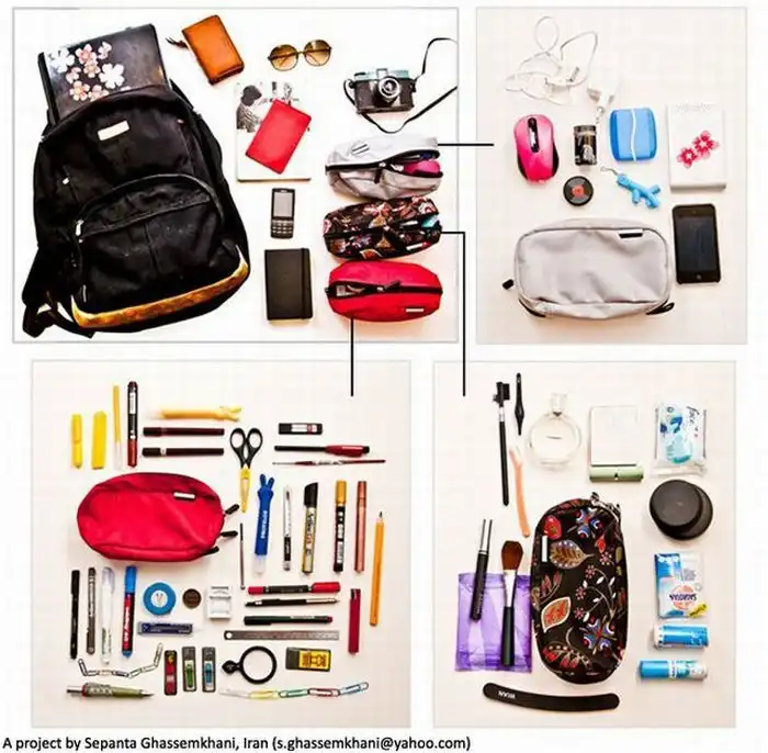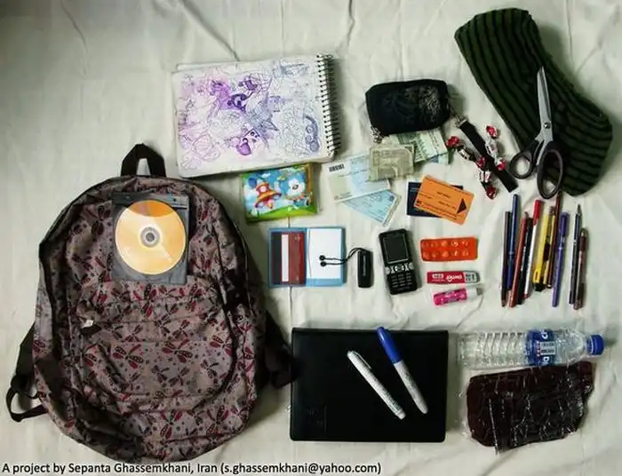 Мы очень мало знаем об иранцах. Иран - достаточно закрытая страна, да и на русских улицах не так часто встретишь иранцев. А что если мы могли бы заглянуть в сумку обычного иранца или иранки? Одна девушка, художница по имени Сепанта Гхассемхани воплотила в жизнь специальный проект, попросив иранцев и иранок прислать по Интернету фотографии содержимого их сумок. У нас с вами появляется уникальная возможность соприкоснуться с частной жизнью молодых жителей современной Персии.
