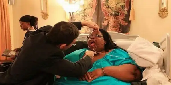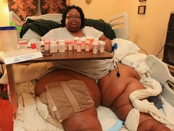 Помимо лишнего веса женщина страдает от регулярных головных болей, но в больнице ей не могут сделать сканирование черепной коробки, поскольку эти 315 килограммов попросту не помещаются в специальный медицинский аппарат.