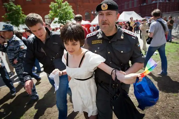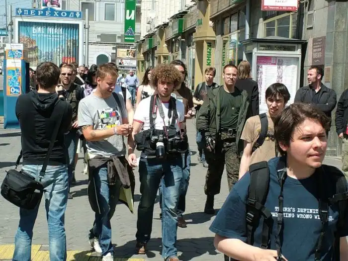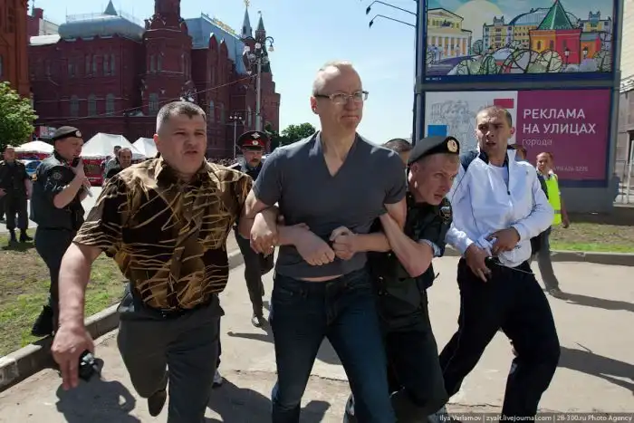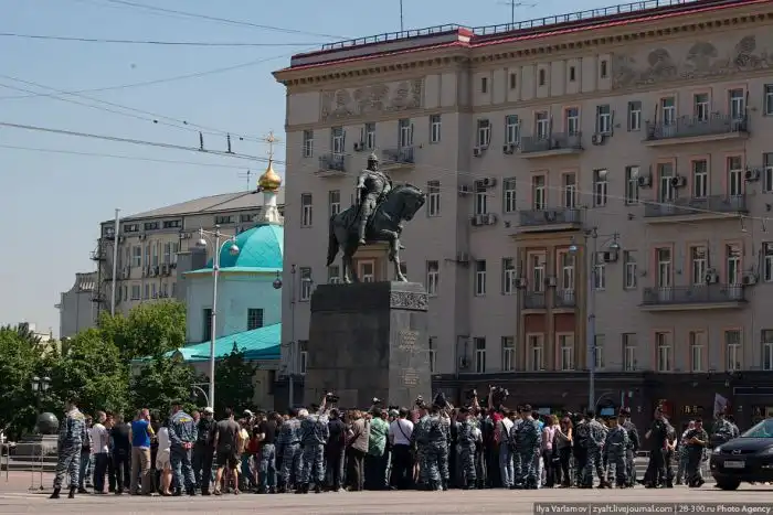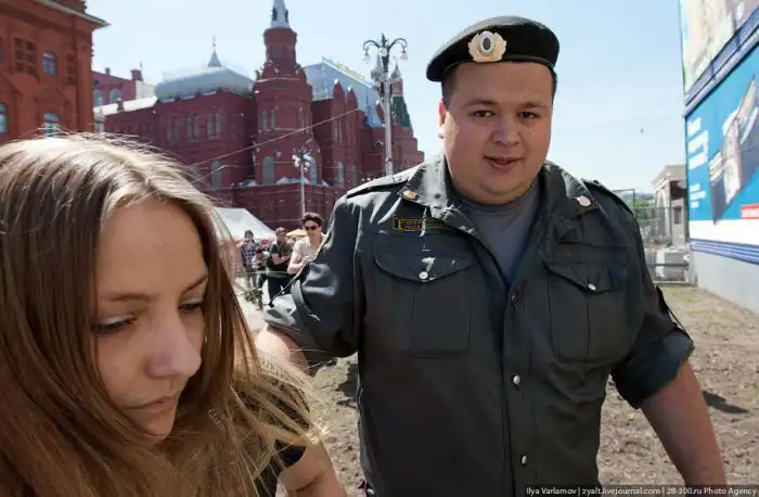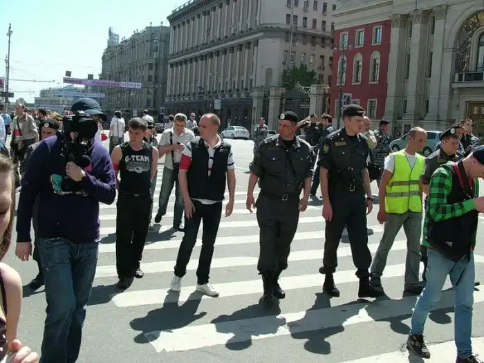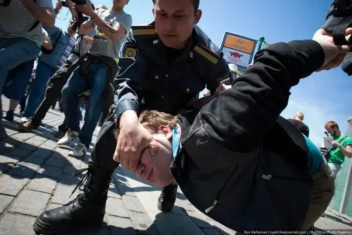 Уже на подходе к местам проведения "акции" участников парада радушно встретил ОМОН и протианики проведения парада.