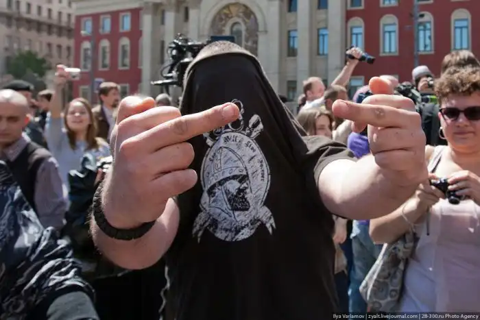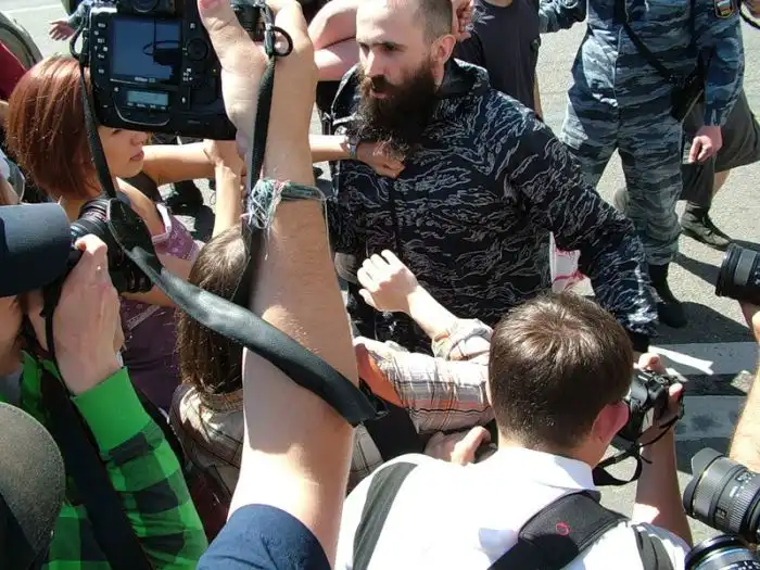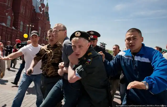 Между противоборствующими сторонами неоднократно завязывались потасовки. Задержано 30 человек. Места в грузовиках полиции хватило всем.