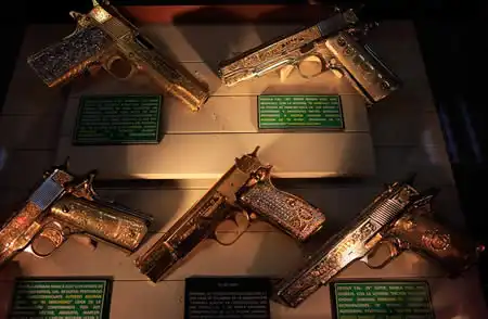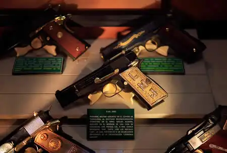 Кушма приготовила для своих читателей репортаж из музея "Нарко", который находится в Мехико. Экспонаты выставки - оружие и боеприпасы, захваченные у наркодиллеров при обысках и облавах. Некотрые экземпляры, без сомнения, можно назвать произведениями художественного и военного искусства.