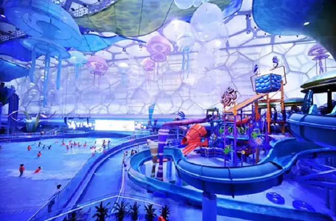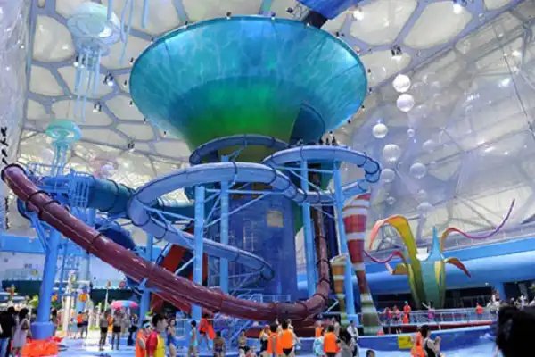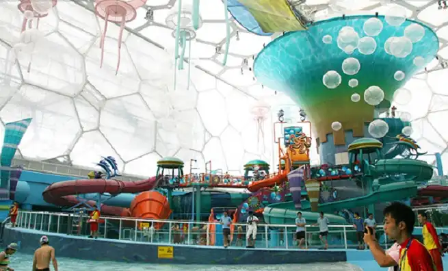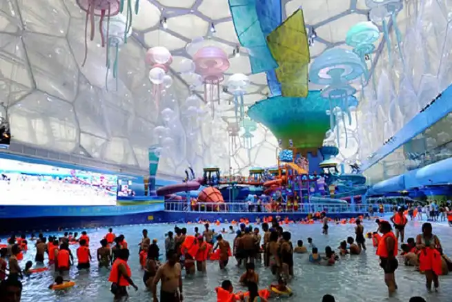 Самый крупный и красивый аквапарк находится в Пекине. Построен он был для олимпийских игр.