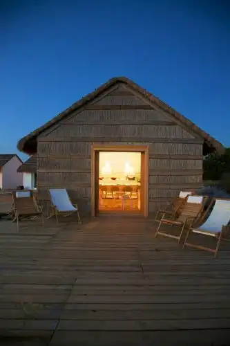 В основе всего проекта лежит самобытность строений, максимально сохранен их изначальный вид, песок и дерево использовались в качестве ключевых элементов дизайна. Таким образом, то, что с виду кажется разрозненными постройками, на самом деле – звенья единой цепи, которая путем не совсем обычной реализации обеспечивает заказчика João Rodrigues комфортным жильем.