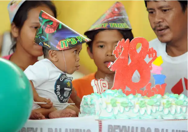 Джунри Балауинг отмечает свой восемнадцатый день рождения с тортом и воздушными шарами.