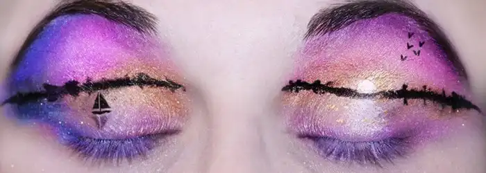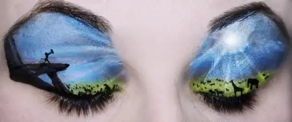 Кэти Алвес из Канады работает графическим дизайнером в типографии, а в свободное время создает вот такие макияжные картины. В основном они рисует сцены из Диснеевских мультфильмов. На некоторые картины уходит по паре часов на одно веко.